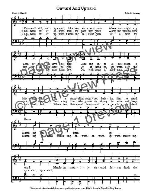 First Line: Onward still and upward Follow evermore